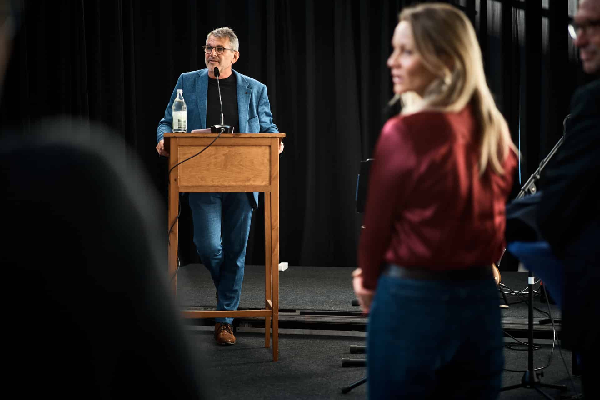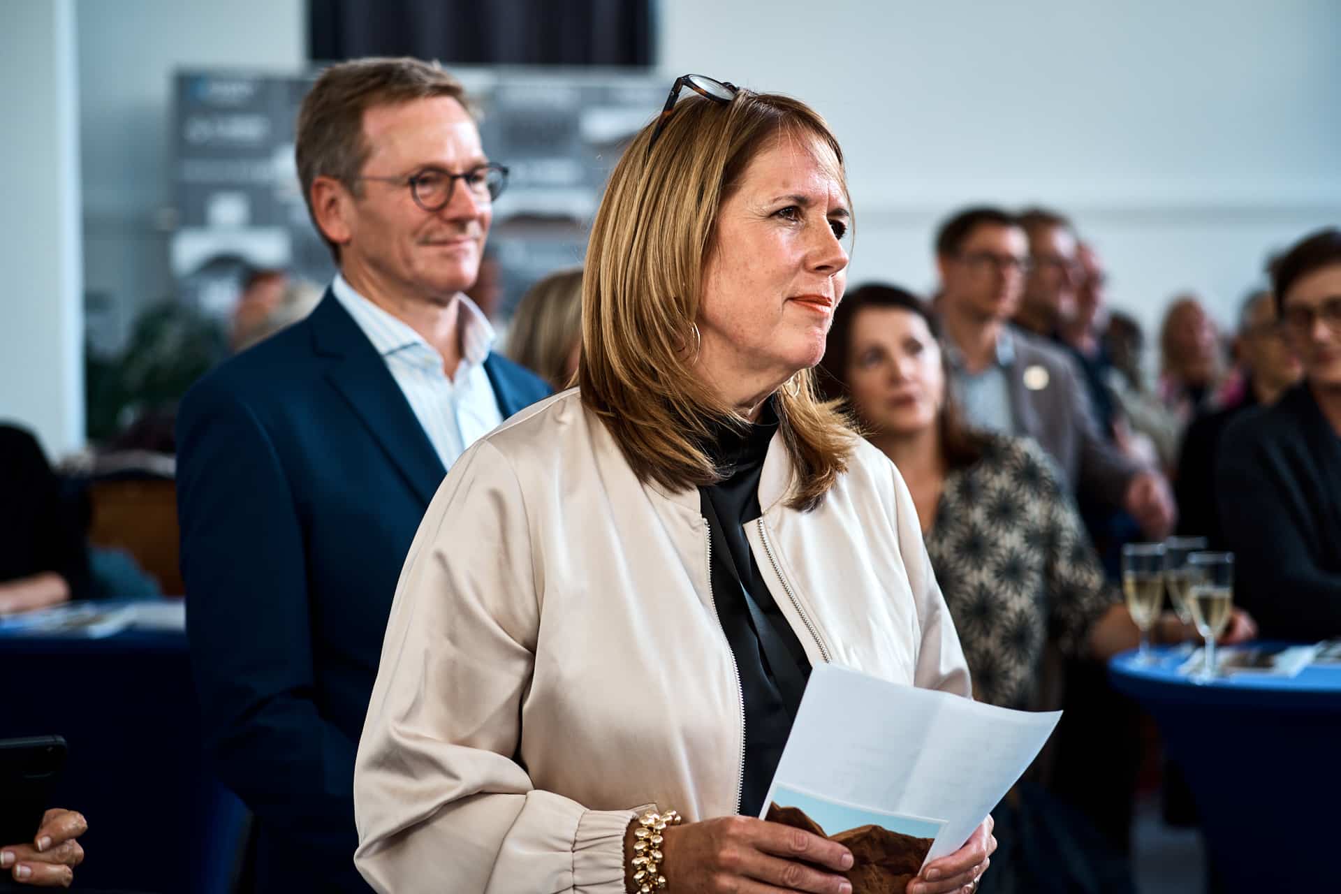 Anschließend fand die offizielle Eröffnung im Kulturhaus statt, bei der Bürgermeister Wolfram Britz, Hafendirektor Volker Molz, Staatssekretär Arne Braun sowie die Künstlerin Gabriele Engelhardt zu Wort kamen.