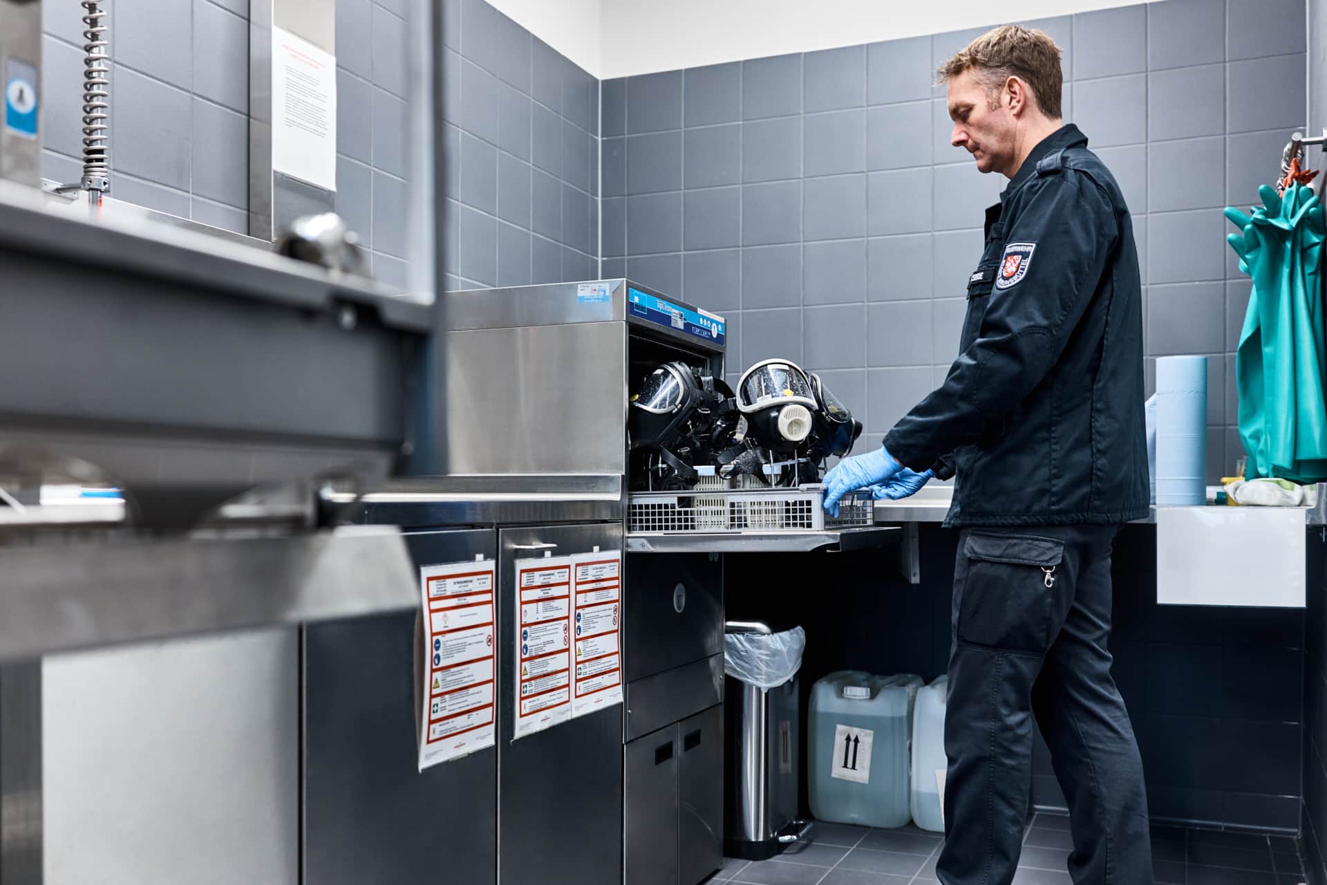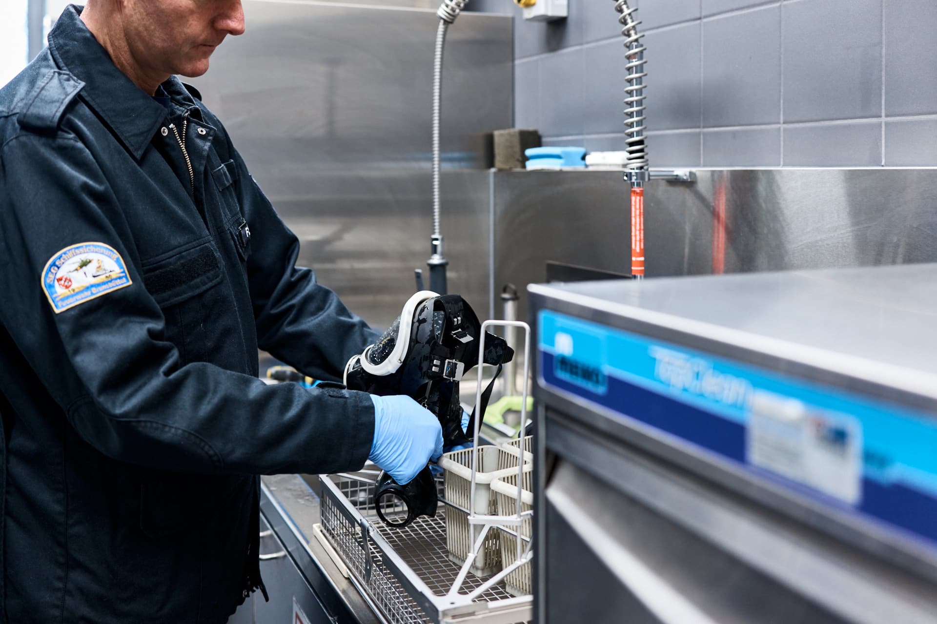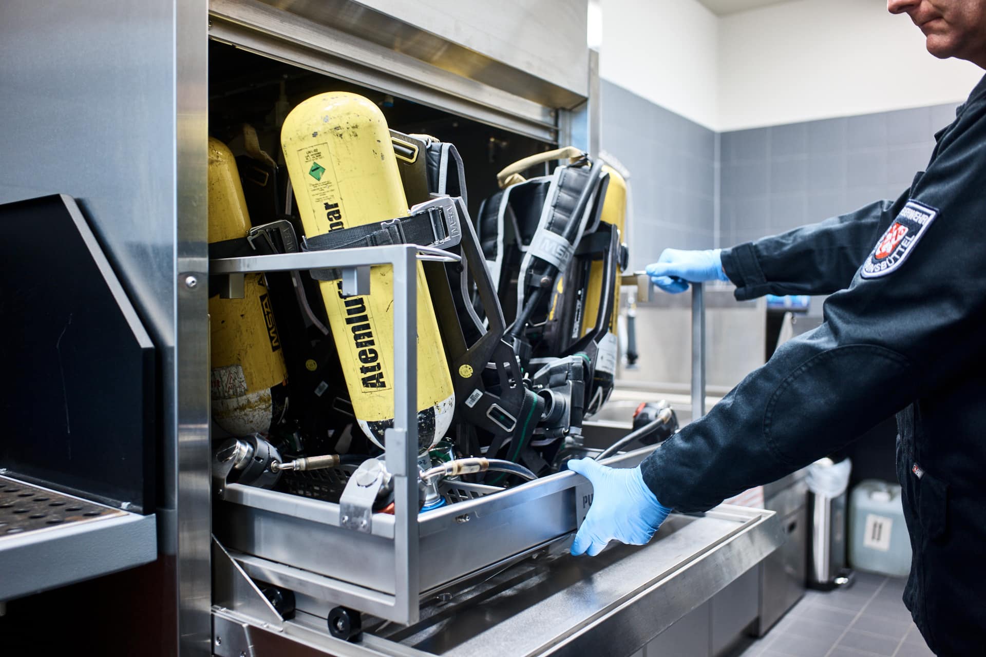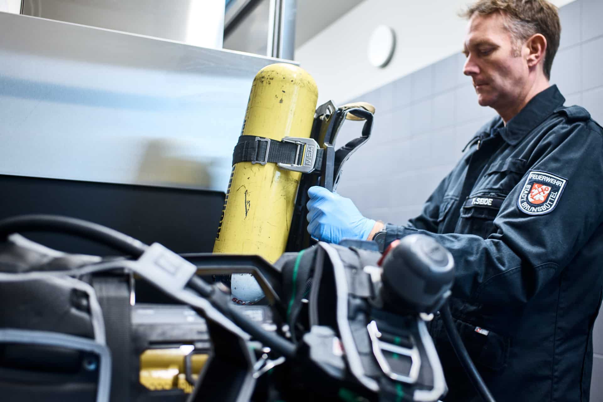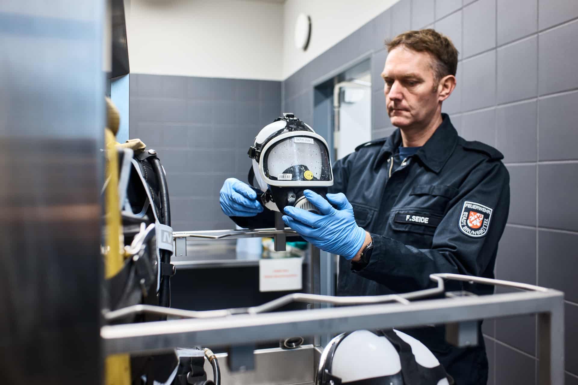 Für ein Meiko Referenzshooting in der Atemschutzwerkstatt der Feuerwache Süd in Brunsbüttel durfte ich dokumentieren, wie Meiko die Reinigung von Atemschutzgeräten und Schutzausrüstung (PSA) umsetzt.